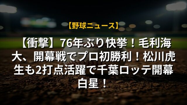 【衝撃】76年ぶり快挙!毛利海大、開幕戦でプロ初勝利!松川虎生も2打点活躍で千葉ロッテ開幕白星!