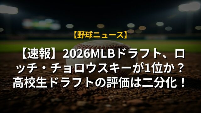 【速報】2026MLBドラフト、ロッチ・チョロウスキーが1位か?高校生ドラフトの評価は二分化!