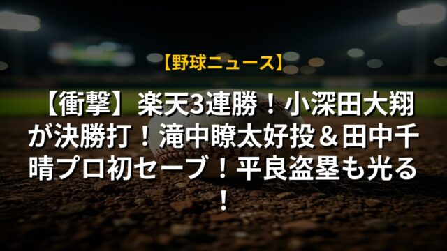 【衝撃】楽天3連勝!小深田大翔が決勝打!滝中瞭太好投&田中千晴プロ初セーブ!平良盗塁も光る!