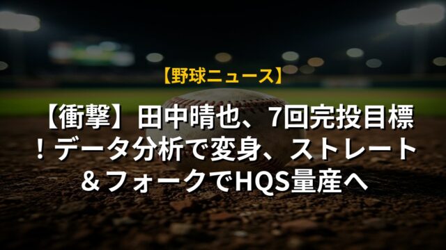 【衝撃】田中晴也、7回完投目標!データ分析で変身、ストレート&フォークでHQS量産へ