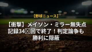 【衝撃】メイソン・ミラー無失点記録34⅔回で終了!判定論争も勝利に隠蔽