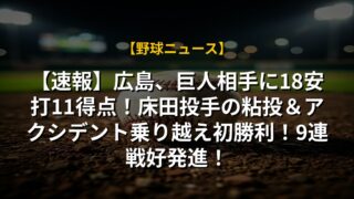 【速報】広島、巨人相手に18安打11得点!床田投手の粘投&アクシデント乗り越え初勝利!9連戦好発進!