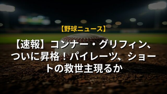 【速報】コンナー・グリフィン、ついに昇格!パイレーツ、ショートの救世主現るか