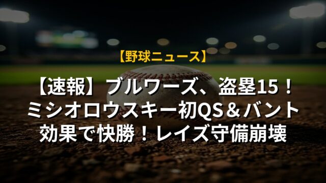 【速報】ブルワーズ、盗塁15!ミシオロウスキー初QS&バント効果で快勝!レイズ守備崩壊