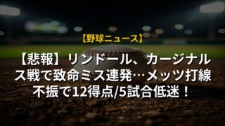 【悲報】リンドール、カージナルス戦で致命ミス連発…メッツ打線不振で12得点/5試合低迷!