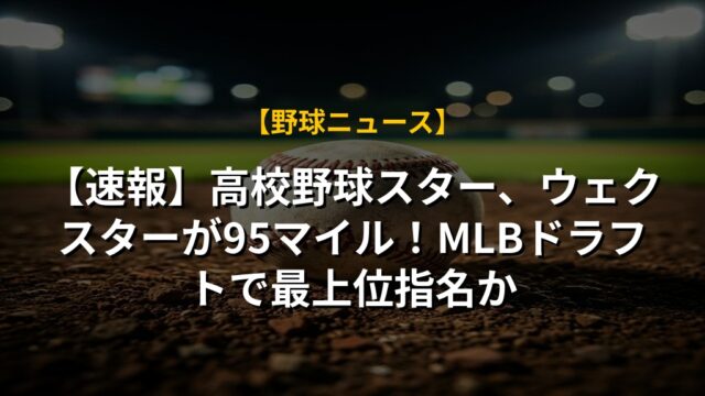 【速報】高校野球スター、ウェクスターが95マイル!MLBドラフトで最上位指名か
