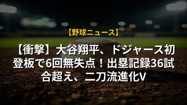 【衝撃】大谷翔平、ドジャース初登板で6回無失点!出塁記録36試合超え、二刀流進化V
