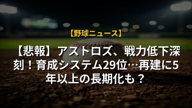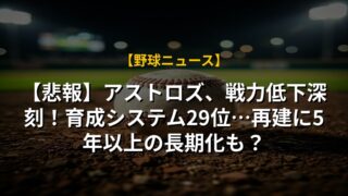 【悲報】アストロズ、戦力低下深刻!育成システム29位…再建に5年以上の長期化も?