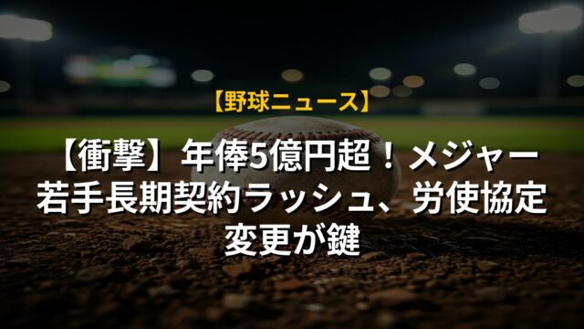 【衝撃】年俸5億円超!メジャー若手長期契約ラッシュ、労使協定変更が鍵