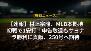 【速報】村上宗隆、MLB本拠地初戦で1安打!申告敬遠もサヨナラ勝利に貢献、250号へ期待