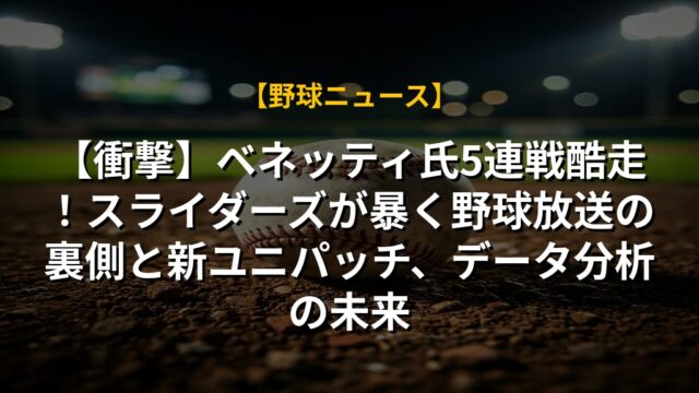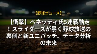 【衝撃】ベネッティ氏5連戦酷走!スライダーズが暴く野球放送の裏側と新ユニパッチ、データ分析の未来