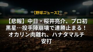 【悲報】中日・桜井亮介、プロ初黒星…投手陣崩壊で連勝止まる!オカリン肉離れ、ハナタマルチ安打