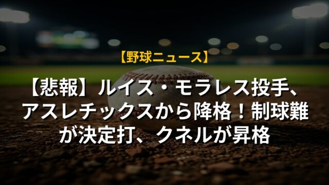 【悲報】ルイス・モラレス投手、アスレチックスから降格!制球難が決定打、クネルが昇格