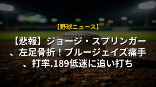 【悲報】ジョージ・スプリンガー、左足骨折!ブルージェイズ痛手、打率.189低迷に追い打ち