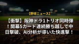 【衝撃】阪神ドラ1トリオ同時弾!開幕5カード連続勝ち越しで中日撃破、AI分析が導いた快進撃!