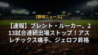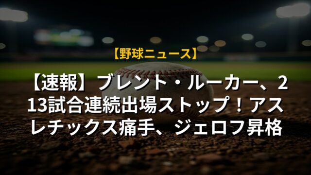 【速報】ブレント・ルーカー、213試合連続出場ストップ!アスレチックス痛手、ジェロフ昇格