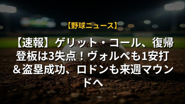 【速報】ゲリット・コール、復帰登板は3失点!ヴォルペも1安打&盗塁成功、ロドンも来週マウンドへ