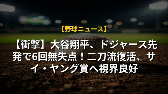 【衝撃】大谷翔平、ドジャース先発で6回無失点!二刀流復活、サイ・ヤング賞へ視界良好