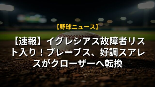 【速報】イグレシアス故障者リスト入り!ブレーブス、好調スアレスがクローザーへ転換