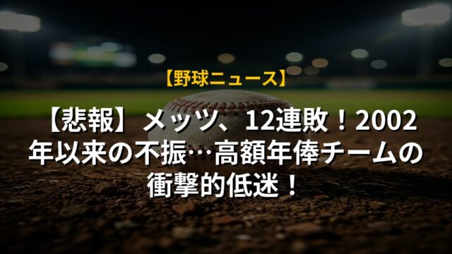 【悲報】メッツ、12連敗!2002年以来の不振…高額年俸チームの衝撃的低迷!