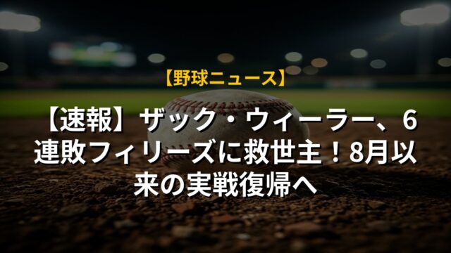 【速報】ザック・ウィーラー、6連敗フィリーズに救世主!8月以来の実戦復帰へ