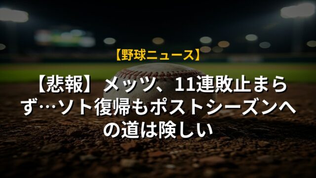 【悲報】メッツ、11連敗止まらず…ソト復帰もポストシーズンへの道は険しい