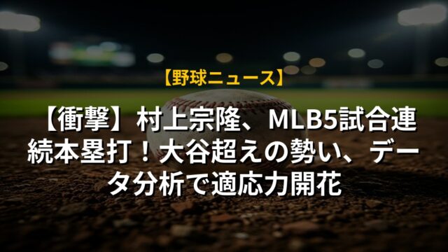 【衝撃】村上宗隆、MLB5試合連続本塁打!大谷超えの勢い、データ分析で適応力開花