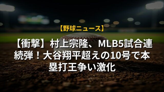 【衝撃】村上宗隆、MLB5試合連続弾!大谷翔平超えの10号で本塁打王争い激化