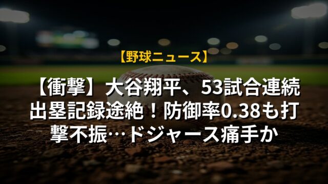 【衝撃】大谷翔平、53試合連続出塁記録途絶!防御率0.38も打撃不振…ドジャース痛手か