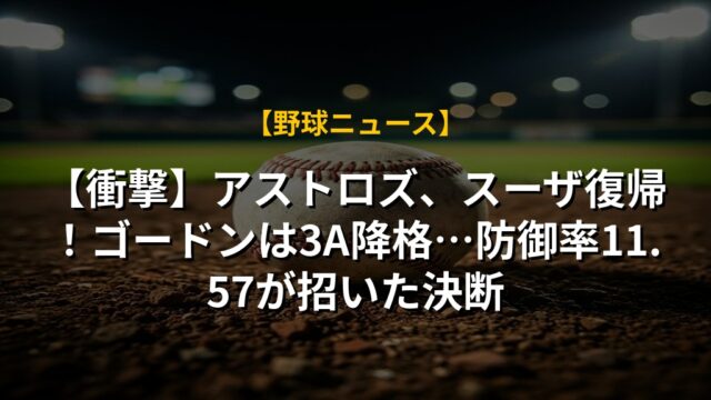 【衝撃】アストロズ、スーザ復帰!ゴードンは3A降格…防御率11.57が招いた決断