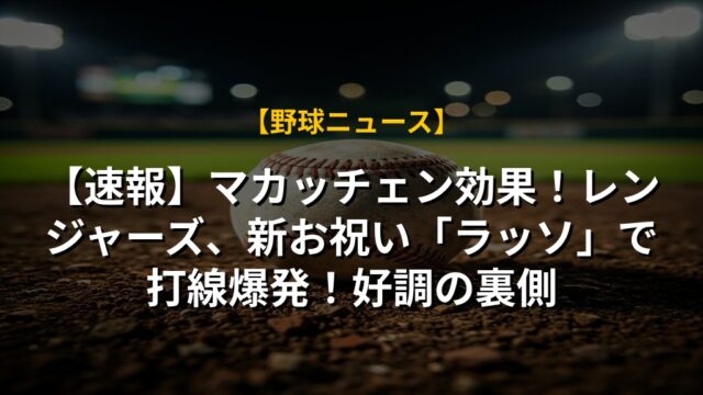 【速報】マカッチェン効果!レンジャーズ、新お祝い「ラッソ」で打線爆発!好調の裏側