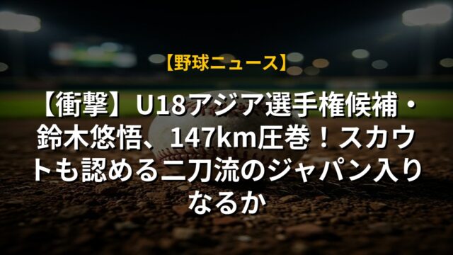 【衝撃】U18アジア選手権候補・鈴木悠悟、147km圧巻!スカウトも認める二刀流のジャパン入りなるか