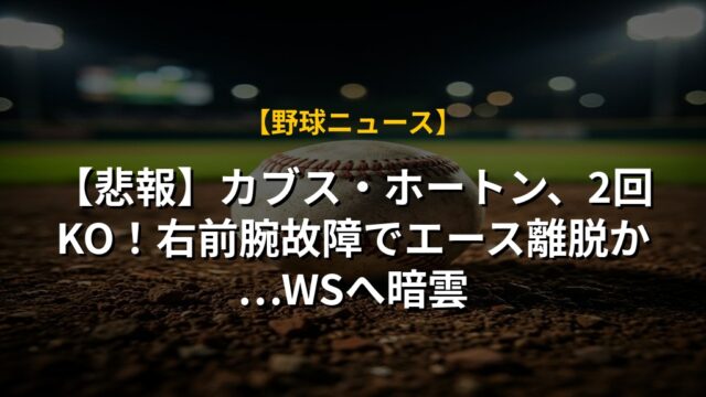 【悲報】カブス・ホートン、2回KO!右前腕故障でエース離脱か…WSへ暗雲